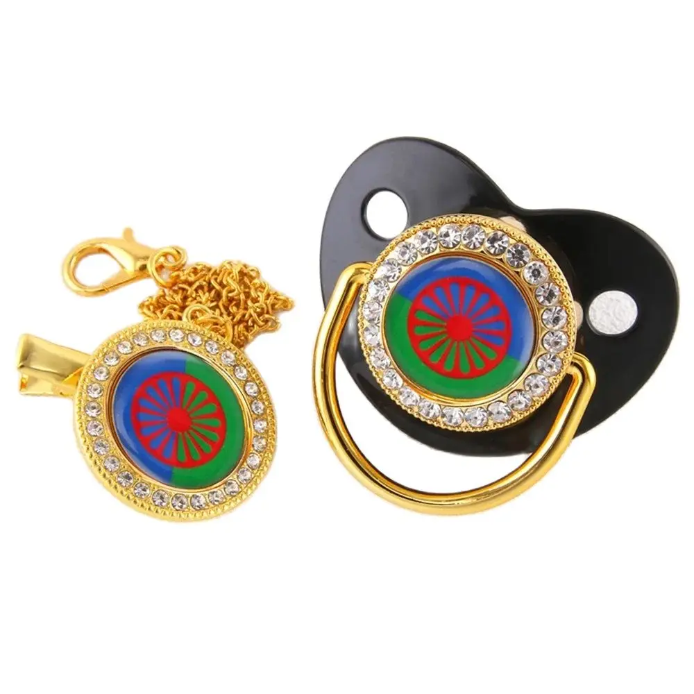 Gypsy Aromanian Romany Luxury Baby Pacifier With Chain Clip Romani Roma Flag Theme Newborn Baby Dummy Soother Nipple